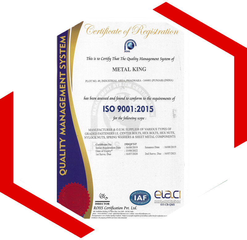 People may consider Fasteners to be a small part of their product, but their performance plays a far bigger role in its success than they think. Metal King is committed to a high level of quality in the products that we produce and stock for our customers. The emphasis of Metal King quality system is continuous quality improvement and defect prevention. To meet our commitment to quality and customer satisfaction, we established a quality system in compliance with the following standards.